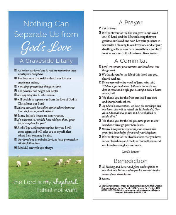 A responsive Scriptural litany - ready by both the pastor and those gathered at the graveside - reminds mourners that nothing, not even death, can separate us from God.