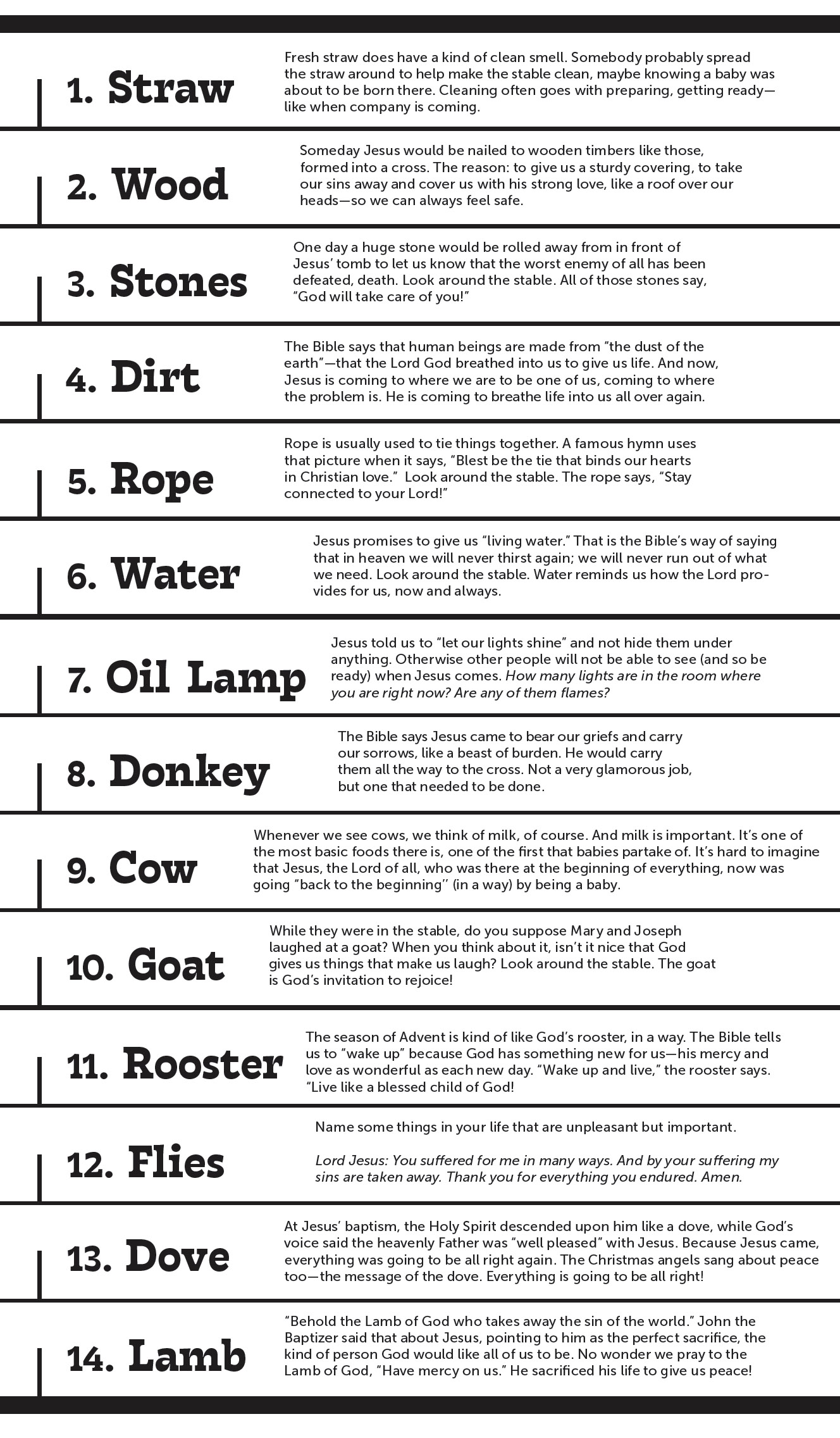 This wonderfully festive chain grows longer throughout the season of Advent as children prayerfully reflect on the items that may have been in the stable the night that Christ was born. At the end of the season, a colorful chain is yours to string around the Christmas tree. Ideal for children ages 4-10. This affordable activity matches the children’s devotional booklet of the same name (LK3). Cutting is required.