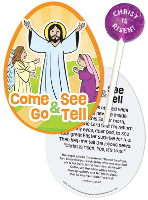 This lollipop/prayer card combo is a tasty way to celebrate the new life won for us through Jesus’ resurrection. These egg-shaped cards have slots cut in the card to hold a lollipop (inserted by you). The back features Matthew 28:5-7. It’s a great addition to any Easter basket!