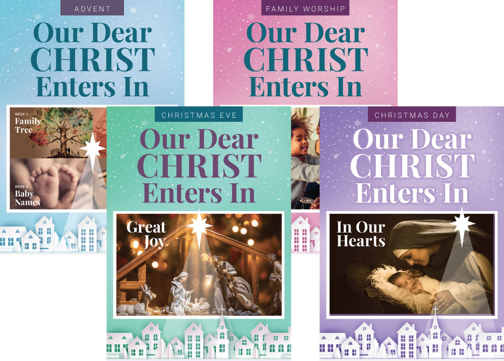 Complete collection SAVE and get everything you need to present the entire Our Dear Christ Enters In series of products to your church with the Our Dear Christ Enters In Complete Collection kit. $199.99 (Value $407, save over $207)